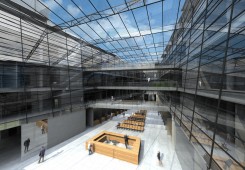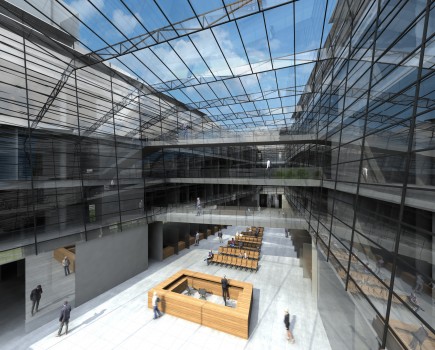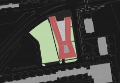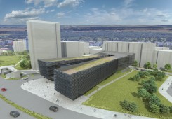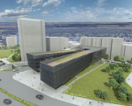 RADNICE MČ PRAHA 11 –ŘEŠENÉ ÚZEMÍ NA HÁJÍCH JE VYMEZENO ZE SEVERU ULICÍ OPATOVSKOU S DOPRAVNĚ VÝZNAMNOU SVĚTELNĚ ŘÍZENOU KŘIŽOVATKOU, Z VÝCHODU ULICÍ BAJKONURSKOU A Z JIHU PAK ULICÍ TATARKOVOU. NÁŠ NÁVRH VYCHÁZÍ Z URBANISTICKÉHO ZÁMĚRU VLOŽIT DO ORTOGONÁLNÍHO HMOTOVÉ STRUKTURY SÍDLIŠTĚ NOVÝ TVAR PŮSOBÍCÍ SVÝM ARCHITEKTONICKÝM ZTVÁRNĚNÍM JAKO KONTRAPUNKT KE STÁVAJÍCÍ ZÁSTAVBĚ. ZÁROVEŇ JSME USILOVALI ZA POMOCI ARCHITEKTONICKÝCH PROSTŘEDKŮ O ZŘETELNOU PODPORU SPOLEČENSKÉHO VÝZNAMU BUDOVY PŘI ZACHOVÁNÍ ROZUMNÉHO MĚŘÍTKA V URBANISTICKÉM KONTEXTU OKOLNÍ ZÁSTAVBY. NAVRŽENÁ BUDOVA RADNICE PŘIPOMÍNÁ V SEVERNÍ ČÁSTI SVÝM PŮDORYSNÝM TVAREM ROZEVŘENOU KNIHU, KTERÁ UMOŽŇUJE POHODLNÝ VSTUP DO OBJEKTU A ZÁROVEŇ PROSTOROVĚ DOTVÁŘÍ MALOU PIAZZETTU V BLÍZKOSTI STANICE METRA. SVOU OMEZENOU PODLAŽNOSTÍ A HORIZONTÁLNÍ HMOTOU OKOLNÍ ZÁSTAVBU VHODNĚ DOPLŇUJE. DOCHÁZÍ TAK K DIALOGU HORIZONTÁLY A VERTIKÁLY. NOVÁ RADNICE BY MĚLA BÝT OTEVŘENÁ, PŘEHLEDNÁ A PŘÍVĚTIVÁ PRO VŠECHNY PŘÍCHOZÍ, ZAMĚSTNANCE NEVNÍMAJE. MĚLA BY BÝT TÉŽ VARIABILNÍ VE SVÝCH VNITŘNÍCH PROSTOROVÝCH MOŽNOSTECH, KTERÉ BY MĚLY SATUROVAT BUDOUCÍ POTŘEBY KOMUNÁLNÍ EXEKUTIVY. PROSKLENÝ FASÁDNÍ PLÁŠT´, V NĚMŽ SE ZRCADLÍ PŘILEHLÝ PARK EVOKUJE VZDUŠNOU TRANSPARENTNÍ BUDOVU.