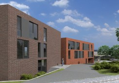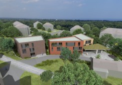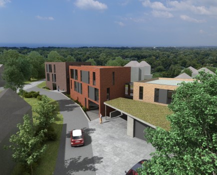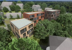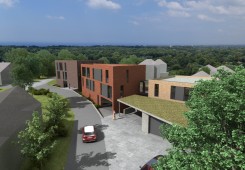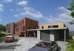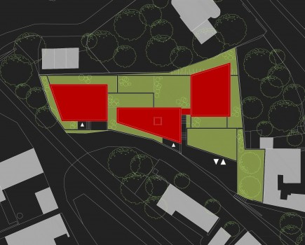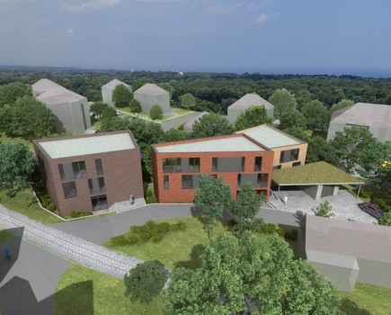 OBYTNÁ ZÁSTAVBA U DEJVICKÉHO RYBNÍČKU, PRAHA 6 – DEJVICE. NÁVRH ŘEŠENÉ OBYTNÉ ZÁSTAVBY SE NACHÁZÍ PŘI ULICI U DRÁHY. NAVRHOVANÉ URBANISTICKÉ A OBJEMOVÉ ŘEŠENÍ NAVAZUJE NA STÁVAJÍCÍ PŘEVAŽUJÍCÍ MĚŘÍTKO A ČLENĚNÍ ZÁSTAVBY TÉTO ČÁSTI DEJVIC – TJ. NA DROBNOU VILOVOU ZÁSTAVBU S NEPRAVIDELNOU „ROSTLOU“ STRUKTUROU. VARIANTA ŘEŠENÍ DOMU Z NĚKOLIKA SOLITÉRNÍCH HMOT NA SPOLEČNÉ PODNOŽI GARÁŽÍ SE JEVÍ JAKO NEJVHODNĚJŠÍ JAK Z HLEDISKA URBANISTICKÉHO A DOPRAVNÍHO, TAK Z HLEDISKA VYPOŘÁDÁNÍ SE S VÝŠKOVOU KONFIGURACÍ STÁVAJÍCÍHO TERÉNU. NAVRHOVANÁ ZÁSTAVBA JE SLOŽENÁ ZE 3 NADZMENÍCH VILADOMŮ NAPOJENÝCH NA ULICI U DRÁHY. DÍKY TÉTO ZVOLENÉ KOMPOZICI SE MEZI DOMY UTVÁŘÍ INTIMNĚJŠÍ OZELENĚNÉ PROSTORY, KTERÉ JSOU ODCLONĚNY OD TRASY ŽELEZNICE A POHLEDOVĚ OBRÁCENÉ DO STÁVAJÍCÍ ZAHRADY. ZÁROVEŇ NÁVRH VYUŽÍVÁ SVAŽITOST TERÉNU, DÍKY KTERÉMU JSOU OBYTNÁ PODLAŽÍ UMÍSTĚNÁ I POD ÚROVEŇ VSTUPNÍHO PODLAŽÍ, A VYTVÁŘÍ TAK KASKÁDOVITĚ UMÍSTĚNÉ TERASY SOUKROMÝCH ZAHRAD. UMÍSTĚNÍM OBJEKTŮ V RŮZNÉ VÝŠKOVÉ ÚROVNI SE NÁVRH I V DÁLKOVÝCH POHLEDECH LÉPE ZAČLEŇUJE DO STÁVAJÍCÍHO STRUKTURY ZÁSTAVBY. SAMOTNÉ ARCHITEKTONICKÉ POJETÍ FASÁD NAVRHOVANÝCH VILADOMŮ JE VOLNĚ INSPIROVÁNO TYPICKÝM VYUŽITÍM REŽNÉHO ZDIVA U VIL V TĚSNĚ SOUSEDÍCÍ ČTVRTI OŘECHOVKA.